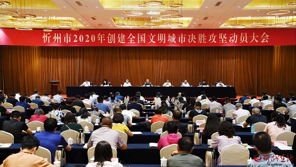 忻州市2020年創(chuàng)建全國文明城市決勝攻堅動員大會會場。 本報記者 劉紀(jì)森