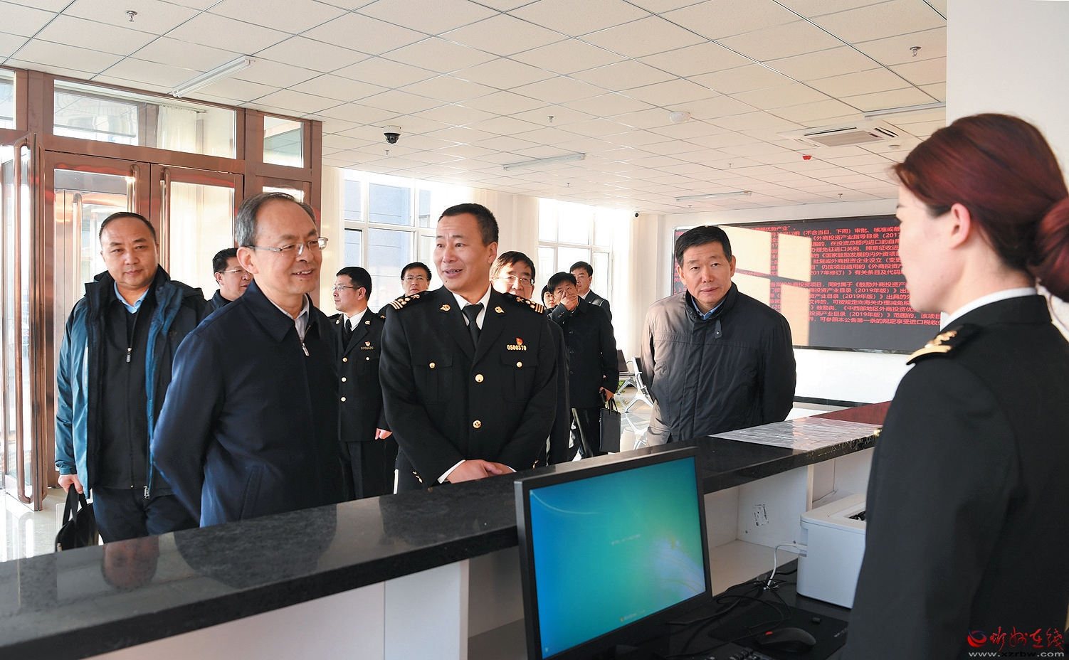 自今年10月份開關(guān)以來,忻州海關(guān)結(jié)合忻州外向型經(jīng)濟(jì)發(fā)展實(shí)際,緊緊圍繞市委市政府相關(guān)工作部署,積極為忻州外貿(mào)穩(wěn)定發(fā)展服務(wù),保障產(chǎn)業(yè)鏈供應(yīng)鏈穩(wěn)定,打造忻州對(duì)外開放平臺(tái),筑牢國(guó)家安全屏障,為促進(jìn)忻州經(jīng)濟(jì)高質(zhì)量轉(zhuǎn)型發(fā)展作出了貢獻(xiàn)。在海關(guān)報(bào)關(guān)大廳,鄭連生與工作人員進(jìn)行交流,向他們了解進(jìn)出口業(yè)務(wù)開展情況,鼓勵(lì)他們要不斷強(qiáng)化監(jiān)管、優(yōu)化服務(wù),為企業(yè)提供更高效、便捷、優(yōu)質(zhì)的服務(wù),促進(jìn)地方外向型經(jīng)濟(jì)發(fā)展。在消防控制室和實(shí)驗(yàn)室,鄭連生察看了各種專業(yè)設(shè)備配置運(yùn)行情況,了解了出入境檢驗(yàn)檢疫等相關(guān)工作情況。他希望忻州海關(guān)繼續(xù)著眼經(jīng)濟(jì)社會(huì)發(fā)展大局,弘揚(yáng)海關(guān)優(yōu)良作風(fēng),發(fā)揮海關(guān)職能作用,創(chuàng)新海關(guān)監(jiān)管制度,依法守好國(guó)門,推動(dòng)通關(guān)便利化,全面提升服務(wù)對(duì)外開放的能力和水平,幫助企業(yè)做大做強(qiáng)。