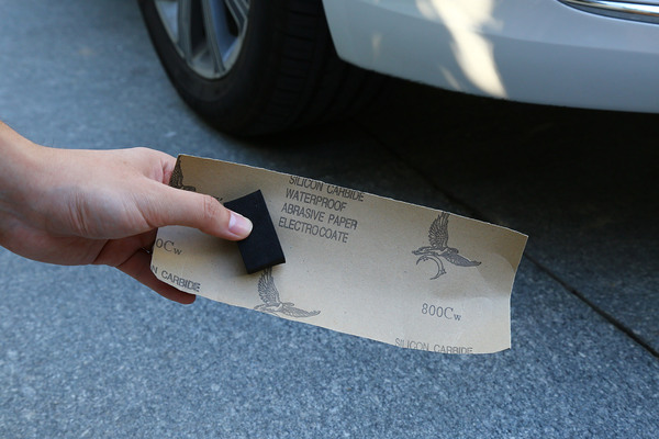 開(kāi)始補(bǔ)漆作業(yè),先清洗劃痕位置以及周?chē)胤?。先?00的砂紙進(jìn)行打磨,墊上一塊墊木沾一些水,可以更好掌握砂紙打磨時(shí)的力度。將劃痕處的漆面以及傷痕打磨平整并再次清洗擦干。