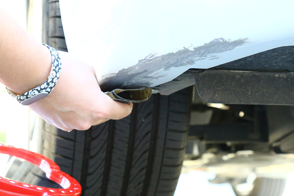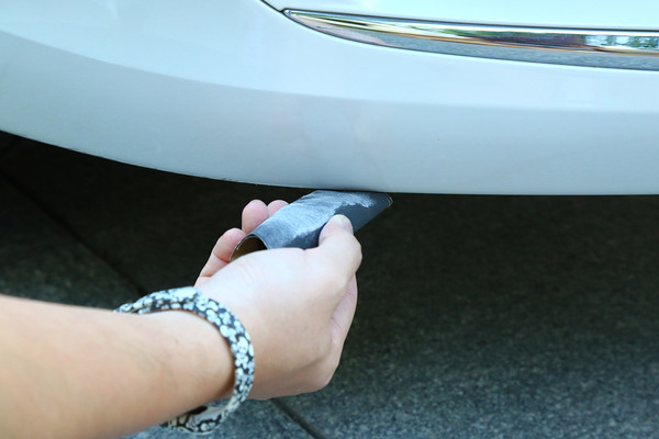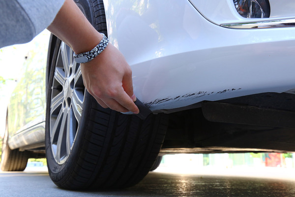 我們找來(lái)一輛前保險(xiǎn)杠底部被蹭得面目全非的可憐車(chē),在選擇補(bǔ)漆工具時(shí)要根據(jù)劃痕的情況進(jìn)行合理選擇,不過(guò)就算是最嚴(yán)重的大面積傷及底漆的修補(bǔ)套裝,一般也不超過(guò)百元。