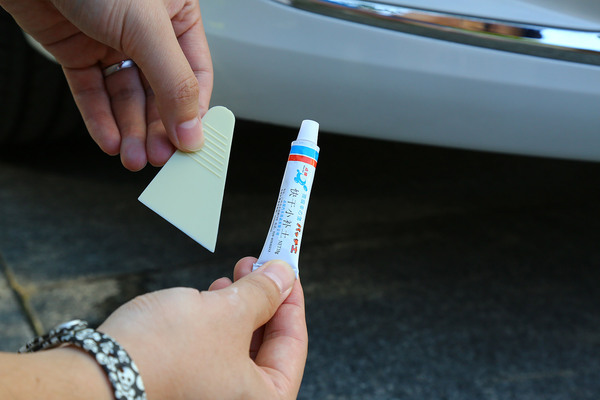 補(bǔ)土的配件包括砂紙和刮板。首先將補(bǔ)土擠在刮板上,然后再劃痕處進(jìn)行刮涂,先是進(jìn)行薄薄的一層,讓后要晾干3-5分鐘,之后再刮涂一層,再晾干,重復(fù)幾次,直到劃痕凹陷處被填平。等10-15分鐘左右補(bǔ)土完全干燥,之后用800的砂紙沾一些水將補(bǔ)土處進(jìn)行再次打磨平整。