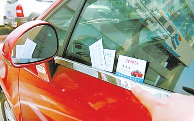 車(chē)窗上被插上各種名片式的小廣告,盡管令很多車(chē)主不勝其煩,但大家也多是取下來(lái)直接扔掉,沒(méi)太當(dāng)回事,而車(chē)主王先生卻因此花了幾百元的修車(chē)錢(qián)。