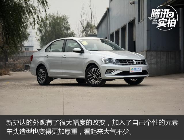 新捷達的外觀有了很大幅度的改變,加入了自己個性的元素,車頭造型也變得更加厚重,看起來大氣不少。增大了進氣格柵的的面積,兩側(cè)與大燈相連有效地增強了前臉的橫向視覺效果。而內(nèi)部橫豎相連的鍍鉻裝飾,看上去和上汽大眾的車型很像。發(fā)動機蓋的棱線比以往更加清晰,凸顯出硬朗的設(shè)計元素。棱角分明的前大燈與進氣格柵融為一體,內(nèi)部同樣采用家族式的"雙U型"結(jié)構(gòu),很好的提升了其辨識度。車牌下方的進氣格柵造型也進行了改變,底部增加的鍍鉻飾條看著也很協(xié)調(diào),這也算是迎合國內(nèi)消費者的口味。保險杠兩側(cè)的多邊形霧燈輔以鍍鉻飾條,看上去更顯精致。