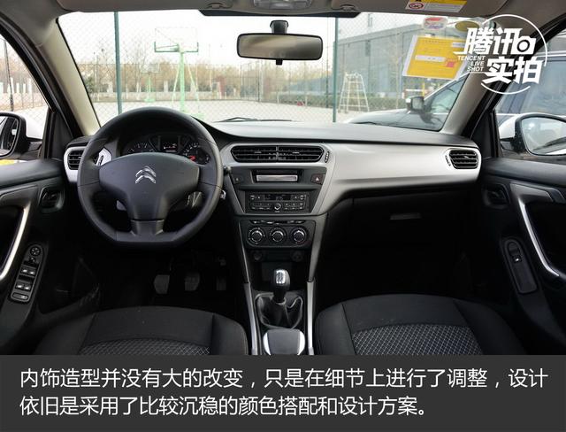 內(nèi)飾造型并沒有大的改變,只是在細節(jié)上進行了調(diào)整,設(shè)計依舊是采用了比較沉穩(wěn)的顏色搭配和設(shè)計方案。中控臺的材質(zhì)還是硬塑料,做工和顏色搭配還算不錯,畢竟它是一臺雪鐵龍的入門級車型。三幅平底方向盤造型看著令人很有好感,而且手感也不錯,支持上下兩向調(diào)節(jié),并不能前后拉伸。指針式儀表盤黑底白字清晰易讀,表盤上新增了雪鐵龍法文LOGO和三叉星式圖案,上方顯示屏的顏色也從紅色變?yōu)榱税咨?。多媒體系統(tǒng)功能比較單一,可以提供收音機和通過底部USB接駁外部音源。