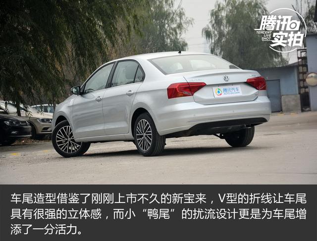 車身側(cè)面沒有做太大改變,延續(xù)了老款車型簡單流暢的線條感。后視鏡的造型也更富棱角,側(cè)轉(zhuǎn)向燈從翼子板移至后視鏡,同時采用了LED光源。門把手采用了與車身同色的設(shè)計,上方增加的鍍鉻裝飾條恰到好處。雙色多幅輪轂是一大亮點,造型動感時尚。采用韓泰KINERGY EX輪胎,尺寸為195/55 R16。制動系統(tǒng)為前輪通風(fēng)盤式,后輪鼓式。車尾造型借鑒了剛剛上市不久的新寶來,V型的折線讓車尾具有很強的立體感,而小“鴨尾”的擾流設(shè)計更是為車尾增添了一分活力。立體造型的尾燈與車尾的折線融為一體,內(nèi)部折線的造型,具有很高的辨識度。車尾的數(shù)字180代表這臺車裝配的是1.5L自然吸氣發(fā)動機。