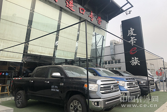 除此之外,記者在亞運村汽車交易市場還看到了一家銷售豐田、福特等進口品牌的皮卡銷售店。那么進口皮卡的銷售是否也同樣火爆呢?銷售顧問吳先生在接受采訪時坦言,進口皮卡在北京的銷量從去年底到現(xiàn)在并沒有暴增的跡象,該店每月銷量保持在20輛左右,每臺售價在40-50萬元之間。因為用戶定位不同,購買進口皮卡的車主一般都是家里有多輛車,購買用途主要是自駕出游。