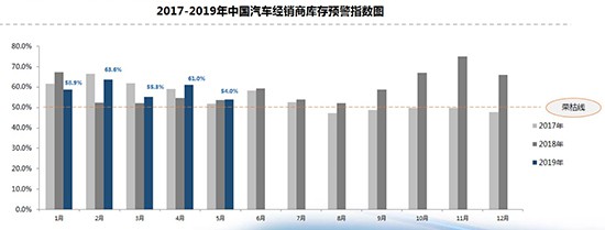 昨日(6月3日),中國汽車流通協(xié)會發(fā)布數據顯示,5月汽車經銷商庫存預警指數為54.0%,環(huán)比回落7個百分點,同比上升0.3個百分點,仍位于警戒線之上。