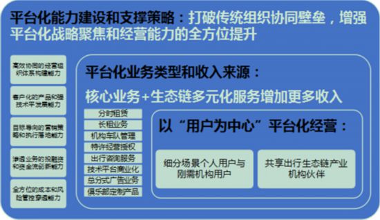 二是平臺化業(yè)務(wù)類型和收入來源,除了目前分時租賃、長租外,機構(gòu)車隊管理、特許經(jīng)營授權(quán)、出行咨詢服務(wù)、IT平臺應(yīng)用商業(yè)化、總分式廣告業(yè)務(wù)、會員俱樂部定制化產(chǎn)品等就是產(chǎn)業(yè)鏈?zhǔn)杖胄聛碓础?/p>