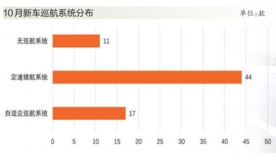 自適應(yīng)巡航系統(tǒng)在緩解疲勞和保障安全上有明顯優(yōu)勢(shì),在10月上市車型中,搭載該系統(tǒng)的新車有17款,如新款東風(fēng)日產(chǎn)天籟、一汽豐田榮放、長(zhǎng)安CS35、WEY VV5、吉利遠(yuǎn)景X6以及理想ONE等車型,均搭載有自適應(yīng)巡航系統(tǒng),甚至是全速自適應(yīng)巡航系統(tǒng)。與以往相比,自適應(yīng)巡航技術(shù)的滲透率有所提升,而定速巡航的應(yīng)用則更為廣泛,在各級(jí)別車型中均有分布。10月,搭載定速巡航的新車總數(shù)為44款,而不搭載任何巡航系統(tǒng)的車型共有11款,主要體現(xiàn)在定位較低車型上。