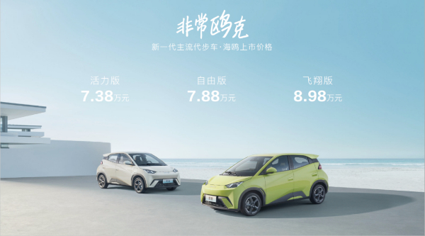 4月26日,比亞迪海鷗正式上市,售價(jià)區(qū)間為7.38萬元-8.98萬元。海鷗擁有305km和405km兩種續(xù)航里程(CLTC綜合工況)。4安全氣囊、ESP、快充等十二項(xiàng)全系標(biāo)配。不僅補(bǔ)強(qiáng)了海洋網(wǎng)的產(chǎn)品矩陣,更成為比亞迪沖擊全新市場空間的生力軍。上市期下訂的用戶,可享包括金融、養(yǎng)護(hù)、免費(fèi)安裝充電樁等多重權(quán)益好禮。
