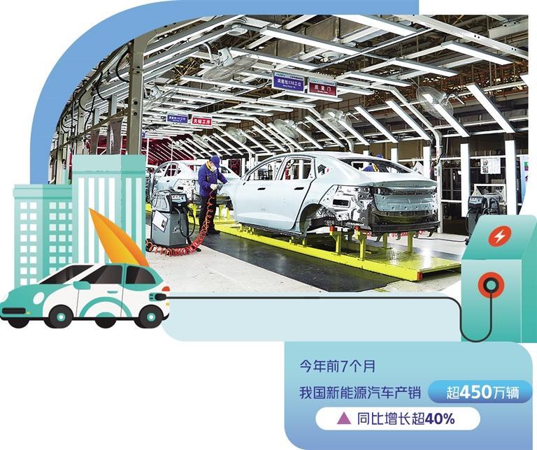 新能源汽車是全球汽車產(chǎn)業(yè)轉(zhuǎn)型升級(jí)、綠色發(fā)展的主要方向,也是我國汽車產(chǎn)業(yè)高質(zhì)量發(fā)展的戰(zhàn)略選擇。今年前7個(gè)月,我國新能源汽車產(chǎn)銷超過450萬輛,同比增長(zhǎng)超過40%。其中,出口63.6萬輛,同比增長(zhǎng)1.5倍,成為我國經(jīng)濟(jì)一個(gè)強(qiáng)勁增長(zhǎng)點(diǎn)。