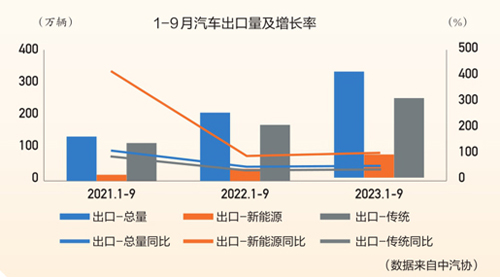 在國內(nèi)市場快速增長的同時(shí),新能源汽車也在持續(xù)推動(dòng)出口市場的發(fā)展。9月,新能源汽車國內(nèi)銷量80.8萬輛,環(huán)比增長6.9%,同比增長22.8%;新能源汽車出口9.6萬輛,環(huán)比增長6.5%,同比增長92.8%。1~9月,新能源汽車國內(nèi)銷量545.3萬輛,同比增長30.5%;新能源汽車出口82.5萬輛,同比增長1.1倍。