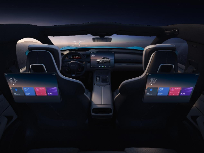 基于“以人為中心”的座艙交互架構(gòu)以及小米澎湃OS操作系統(tǒng)的加持,小米SU7實現(xiàn)從硬件到軟件的全面共享生態(tài),進化成為移動智能空間。該座艙搭載16.1英寸3K分辨率中控生態(tài)屏,56英寸HUD,車規(guī)級7.1英寸翻轉(zhuǎn)式儀表屏,采用2塊原生車機系統(tǒng)的小米Pad后排拓展屏,匹配驍龍8295座艙芯片,AI算力30TOPS,五屏聯(lián)動,帶來極致流暢的人車交互體驗。