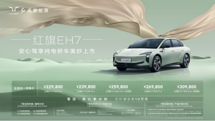 隨著環(huán)保意識(shí)的提升和新能源技術(shù)的飛速發(fā)展,新能源汽車(chē)成為全球汽車(chē)產(chǎn)業(yè)發(fā)展的新方向。紅旗新能源緊隨時(shí)代潮流,于3月20日在深圳舉辦“安心駕享·紅旗EH7上市發(fā)布會(huì)”,推出了其在新能源領(lǐng)域的里程碑產(chǎn)品——紅旗EH7,全國(guó)統(tǒng)一零售價(jià)為22.98萬(wàn)-30.98萬(wàn)元。這款車(chē)的推出,不僅增強(qiáng)了紅旗新能源的市場(chǎng)競(jìng)爭(zhēng)力,也為汽車(chē)行業(yè)的綠色轉(zhuǎn)型和技術(shù)革新樹(shù)立了新典范。