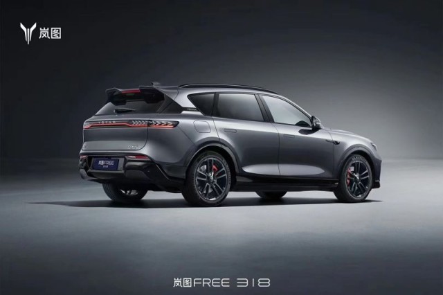 嵐圖FREE 318的車側與車尾也進一步“黑化”,運動化輪圈內還采用了紅色制動卡鉗,此外,新車尾部激進的尾翼也為整體視覺效果增色不少,給人很強的視覺質感。