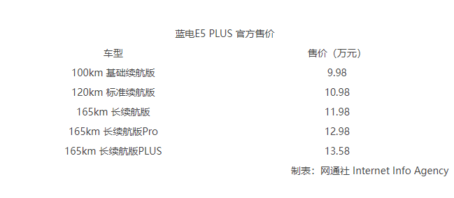 10月17日,藍電E5PLUS正式上市,新車共推出5款車型,售價區(qū)間為9.98萬-13.58萬元。新車定位中型插混SUV,并采用7座、5座兩種座椅布局可選,滿足家庭出行多場景需求。此外,新車入門車型純電續(xù)航達到了100km,以及165km同級最長純電續(xù)航和1300km綜合續(xù)航。