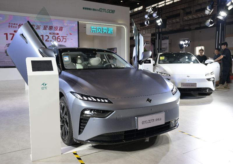 在車展上東風(fēng)奕派展臺(tái)拍攝的“eπ007”。(9月16日攝)新華社記者 蒲曉旭 攝