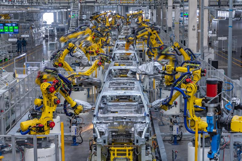 (資料圖片)在位于重慶兩江新區(qū)的賽力斯超級(jí)工廠(chǎng),焊裝車(chē)間生產(chǎn)線(xiàn)上的機(jī)器人在精準(zhǔn)執(zhí)行作業(yè)指令。新華社記者 黃偉 攝