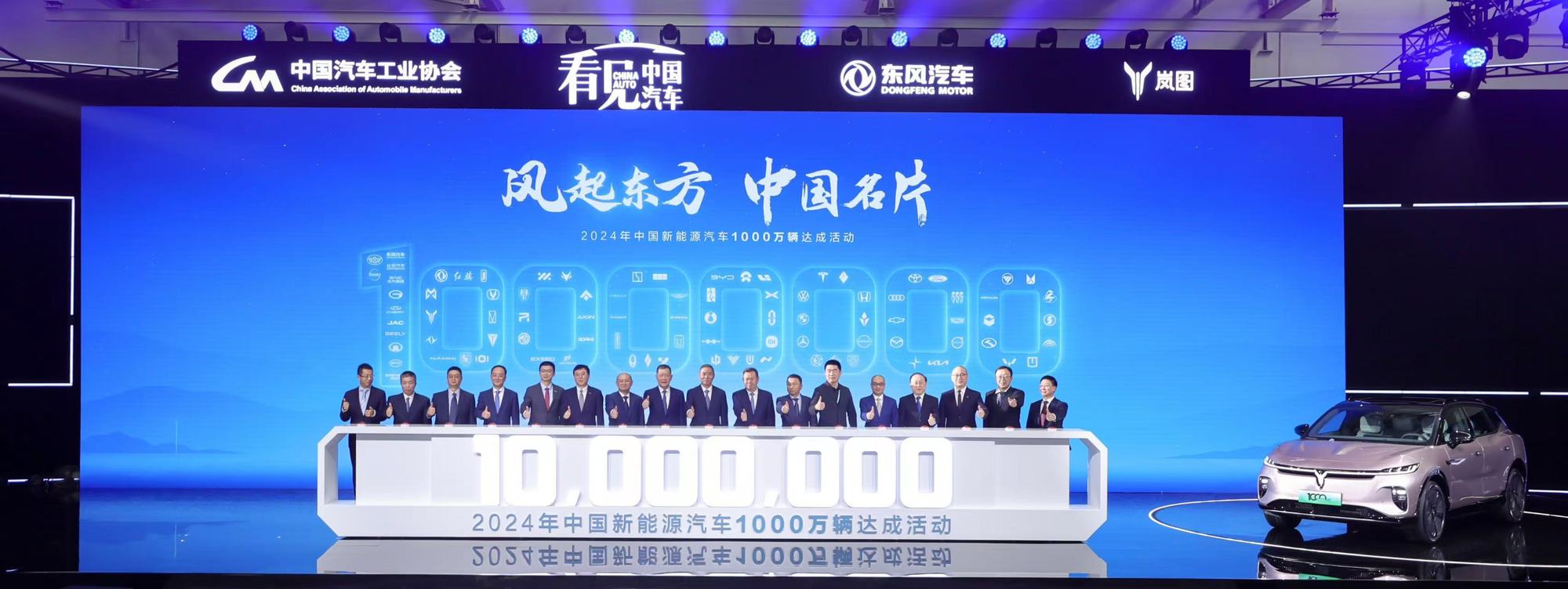 11月14日,在中華人民共和國工業(yè)和信息化部指導(dǎo)下,由中國汽車工業(yè)協(xié)會主辦,東風(fēng)汽車集團有限公司(以下簡稱東風(fēng)汽車)承辦的2024年中國新能源汽車1000萬輛達成活動在東風(fēng)嵐圖云峰工廠盛大舉行,嵐圖知音作為1000萬輛中國新能源汽車下線車型。