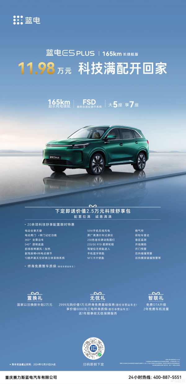 特別是在主銷車型上,藍(lán)電E5 PLUS 165長續(xù)航版搭配2.5萬元科技舒享包,11.98萬元的價格,不僅極具競爭力,更在性能、配置和續(xù)航上全面領(lǐng)先。與同級車型相比,藍(lán)電E5 PLUS在保持高性價比的同時,還提供了更加豐富的配置和更加出色的駕駛體驗。這種獨(dú)到的價格策略,使得藍(lán)電E5 PLUS在市場中脫穎而出,上市25天定單破萬,11月10日全面開啟交付以來,累計交付超5000臺,成為了消費(fèi)者心目中的性價比之選。