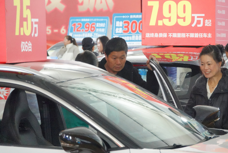 (資料圖片)12月7日,消費(fèi)者在山東煙臺(tái)冬季惠民車展上了解優(yōu)惠促銷車型。新華社發(fā)(唐克攝)