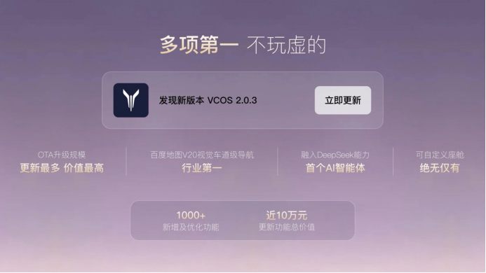 值得注意的是,此次OTA也是一次“貴”的空中升級(jí):不僅涵蓋AI技術(shù)、語(yǔ)音交互、車手生態(tài)等軟件躍升,電池管控技術(shù)等硬件驅(qū)動(dòng),倘若以燃油車更新升級(jí)計(jì)算,讓此次OTA升級(jí)折合市場(chǎng)價(jià)價(jià)值近十萬(wàn)元。