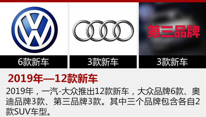2017年進(jìn)入下半年,一汽-大眾就開(kāi)始籌劃2025戰(zhàn)略,以完成更高的銷(xiāo)量目標(biāo)和更長(zhǎng)遠(yuǎn)的發(fā)展。同時(shí),官方還表示將在兩年內(nèi)推出23款新車(chē),并包含大眾、奧迪以及第三品牌。此前,一汽-大眾汽車(chē)有限公司企業(yè)品牌資訊發(fā)言人、公關(guān)總監(jiān)黃龍向網(wǎng)通社表示:“在未來(lái)的車(chē)型投放方面, 2018年共有11款新品投放,其中大眾品牌7款,奧迪品牌4款?!?/p>