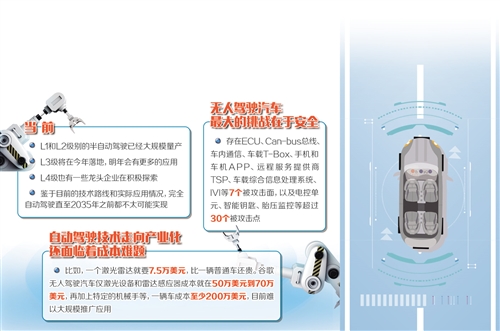 當(dāng)前,L1和L2級(jí)別半自動(dòng)駕駛已經(jīng)大規(guī)模量產(chǎn);L3級(jí)將在今年落地,明年會(huì)有更多應(yīng)用;L4級(jí)也有一些龍頭企業(yè)在積極探索。但是,針對(duì)“2030年左右就可實(shí)現(xiàn)無人駕駛產(chǎn)業(yè)化”的預(yù)測(cè),專家則持謹(jǐn)慎態(tài)度。要真正實(shí)現(xiàn)完全意義上的無人駕駛,還面臨著安全、成本等一系列難題,需要產(chǎn)業(yè)界和全社會(huì)合力推動(dòng)解決。