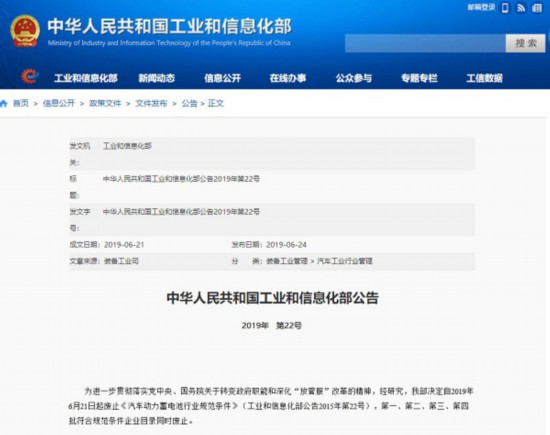 6月24日,工信部正式發(fā)布了一則公告,明確表示自今年6月21日起,廢止《汽車動(dòng)力蓄電池行業(yè)規(guī)范條件》(工業(yè)和信息化部公告2015年第22號(hào)),同時(shí)廢止的還有第一、第二、第三、第四批符合規(guī)范條件企業(yè)目錄。全國(guó)乘用車市場(chǎng)信息聯(lián)席會(huì)秘書長(zhǎng)崔東樹在接受《中國(guó)汽車報(bào)》記者采訪時(shí)表示,此舉意味著,在業(yè)內(nèi)存在近4年的新能源汽車動(dòng)力電池“白名單”正式取消,國(guó)內(nèi)動(dòng)力電池領(lǐng)域?qū)⒂瓉硇乱惠喌母?jìng)爭(zhēng)。