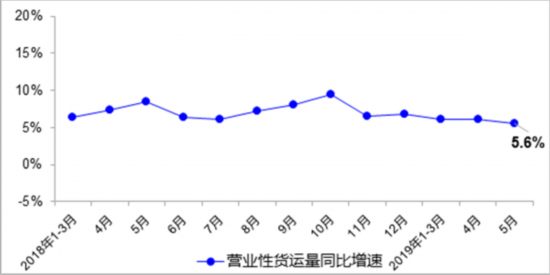 5月,完成營業(yè)性貨運量46.5億噸,同比增長5.6%,其中公路貨運量增長5.6%、水路貨運量增長5.0%。郵政行業(yè)完成業(yè)務(wù)總量1309億元,同比增長30%。