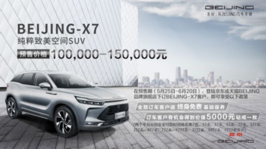 近日,BEIJING汽車品牌在廣州增城工廠中舉行了一場圍繞BEIJING-X7線上發(fā)布會,會上公布了BEIJING-X7的預售價格,區(qū)間為10.00-15.00萬元。據(jù)預測,6月20日預售期結(jié)束后,BEIJING-X7會正式上市。