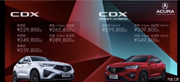 6月26日,新款廣汽謳歌CDX正式上市。新車共推出1.5T、2.0L混動兩種動力共計8款車型,指導價格區(qū)間為22.98-34.98萬元。新車主要增加A-Spec運動款車型,同時針對配置進行調整。詳情請見下表: