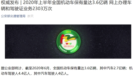 公安部公布,截至2020年6月,全國汽車保有量達2.7億輛,占機動車總保有量的75%。共有12個城市汽車保有量超過300萬輛,其中,北京超過600萬輛、成都超過500萬輛,分列前兩位。
