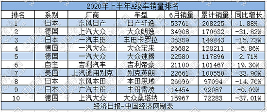 上半年,國內A級車累計銷售227.55萬輛,同比下降27.72%,其中德系和日系分別有四款車型進入榜單前十,呈現出分庭抗禮之勢。許海東分析,在經濟困難的情況下,消費者會更加看中低故障率和省油等優(yōu)勢,進而選擇德系、日系等品牌。