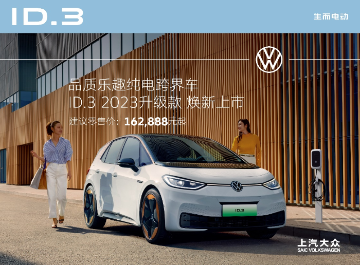 上汽大眾ID.純電系列推出2023升級(jí)款,建議零售價(jià)162,888元起。此次ID.4 X和ID.6 X采用了全新配色與碳晶黑套件,視覺(jué)效果煥然一新,凸顯時(shí)尚活力和運(yùn)動(dòng)氣息。而且勁能四驅(qū)版車型均有價(jià)格優(yōu)化,更具吸引力。ID.3則開放更多選裝方案,提升全系時(shí)尚度和科技感。