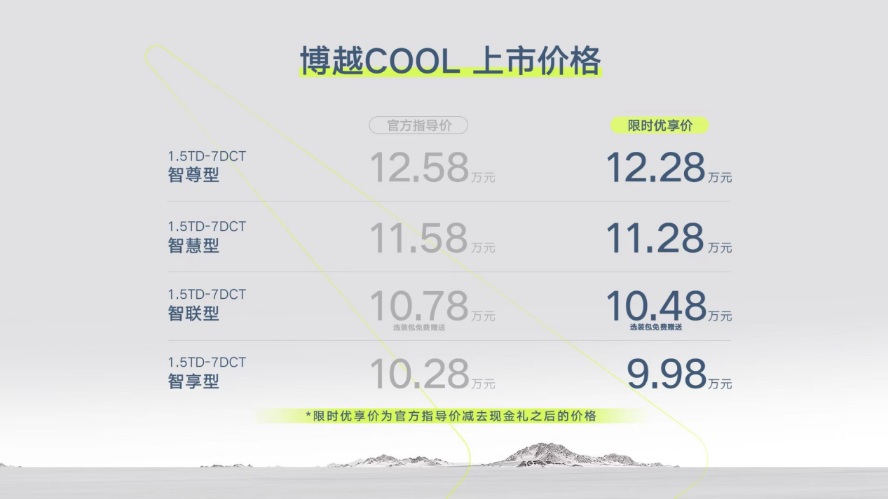 央廣網(wǎng)4月27日消息,4月26日晚吉利汽車全新智能SUV博越COOL正式上市。新車共推出4個版型,官方指導(dǎo)價10.28-12.58萬元。作為博越家族上市7周年的誠意之作,博越COOL不僅以超預(yù)期產(chǎn)品力征服用戶,更在現(xiàn)場舉行首批用戶交車儀式,實現(xiàn)上市即交付,有望成為細分市場最具價值的爆款產(chǎn)品。隨著博越COOL的交付,博越家族全新的雙車布局也正式形成,博越COOL將與博越L共同征戰(zhàn)10-15萬級最主流的緊湊級SUV市場,助力博越家族沖擊細分市場第一陣營。