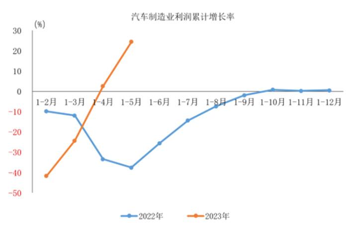 今年4月以來,隨著車企間的“戰(zhàn)火”逐步平息,汽車行業(yè)利潤回升。2023前五個月,中國汽車制造業(yè)利潤率為4.8%,同比增長0.1%;利潤總額1746.2億元,同比增加24.3%。