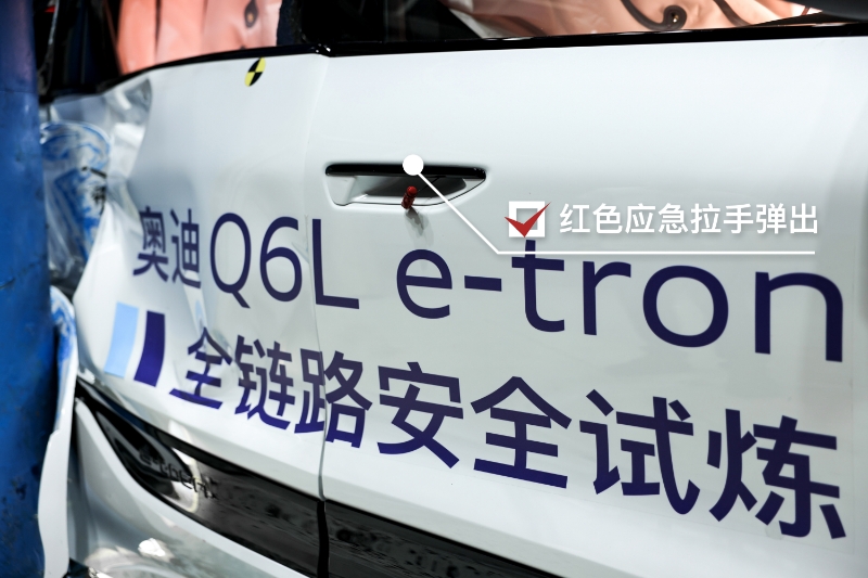 結(jié)果顯示,一汽奧迪Q6L e-tron車身結(jié)構(gòu)完整,A、B、C、D柱均未發(fā)生結(jié)構(gòu)性失效,兩次擠壓下乘員艙依然保持足夠的生存空間。安全帶正常預(yù)緊點(diǎn)爆,側(cè)氣囊、側(cè)氣簾及中央氣囊正常展開,全車假人傷害值均處于優(yōu)秀水平。電池組在遭遇“夾心式?jīng)_擊”后幾乎無變形、無位移,經(jīng)受住幾何形變與短路風(fēng)險雙重考驗(yàn),未發(fā)生冒煙、起火、爆炸或電解液泄漏。高壓系統(tǒng)在毫秒級內(nèi)完成高壓斷電,有效避免短路造成熱失控風(fēng)險。通過科學(xué)的走線,有效的結(jié)構(gòu)保護(hù),以及冗余的功能設(shè)計(jì),保障極限場景下低壓電正常工作。半隱藏式車門把手的紅色應(yīng)急拉手正常彈出,前排車門可正常打開,電動座椅可調(diào)節(jié);車窗自動下降,保障車內(nèi)空氣流動。碰撞后雙閃及時開啟,E-CALL及時啟動并接通人工客服。從堅(jiān)若磐石的乘員艙結(jié)構(gòu),到周全可靠的碰撞后救援機(jī)制等,每一個安全細(xì)節(jié)都交出了高分答卷。