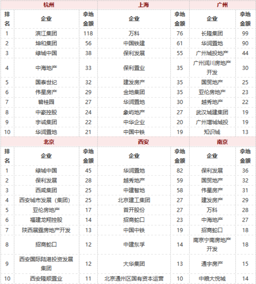 據(jù)中指研究院監(jiān)測,央企國企仍是重點城市拿地主力。華潤置地、保利發(fā)展等全國性龍頭企業(yè)仍在多個重點城市廣泛布局,央國企參與熱度較高,重點城市拿地金額TOP10房企中有半數(shù)以上為央企國企。劉水稱:“這與穩(wěn)健型國央企的資金狀況相對較好有直接關(guān)系。”