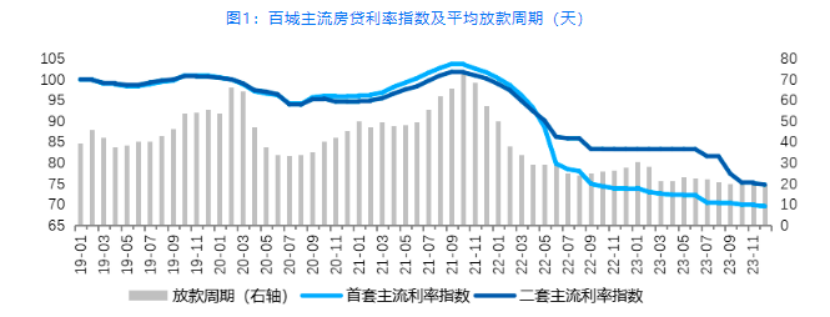 貝殼研究院監(jiān)測(cè)顯示,2023年12月百城首套主流房貸利率平均為3.86%,二套主流房貸利率平均為4.41%,分別較上月微降低1BP、2BP。12月首套、二套主流房貸利率較去年同期分別回落23BP和50BP。本月銀行平均放款周期為19天,與上月持平,維持2019年以來(lái)最快放款速度。