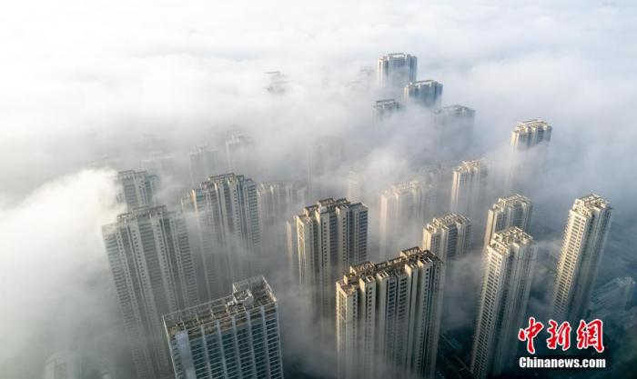 資料圖:武漢城區(qū)上空出現(xiàn)平流霧景觀。 張暢 攝