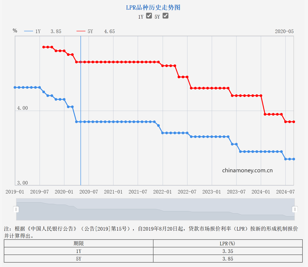 2024年9月20日,全國銀行間同業(yè)拆借中心公布新版LPR報價:1年期品種報3.35%,上月為3.35%;5年期以上品種報3.85%,上月為3.85%。數據顯示,最新LPR維持不變,這使得市場預期落空。