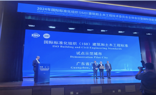 10月18日,2024年國際標準化組織(ISO)建筑和土木工程技術(shù)委員會全體會議在黃渤海新區(qū)八角灣國際會展中心舉行。國際標準化組織(ISO)建筑和土木工程委員會主席約翰斯·索格倫,來自挪威、丹麥、沙特阿拉伯等17個國家建筑和土木工程技術(shù)委員會委員,國內(nèi)、國際相關(guān)科研機構(gòu)、高等院校知名專家學者,國內(nèi)從事裝配式建筑研究、設(shè)計、開發(fā)、咨詢、施工、運營等工作的專業(yè)技術(shù)和管理人員出席會議。廣州市榮獲國際標準化組織(IS0)建筑和土木工程標準試點示范城市,廣州市政協(xié)常委、聯(lián)合國國際生態(tài)生命安全科學院院士王河在現(xiàn)場領(lǐng)取了“國際標準化組織(ISO)建筑和土木工程試點城市:廣東省廣州市”牌匾。