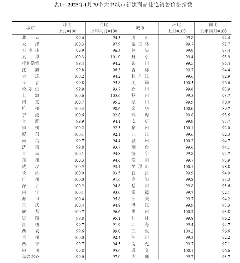 2025年開年,各線城市房價走勢如何?2月19日,國家統(tǒng)計局發(fā)布2025年1月份商品住宅銷售價格變動情況統(tǒng)計數(shù)據(jù)顯示,一、二線熱點(diǎn)城市穩(wěn)步邁入“止跌回穩(wěn)”。