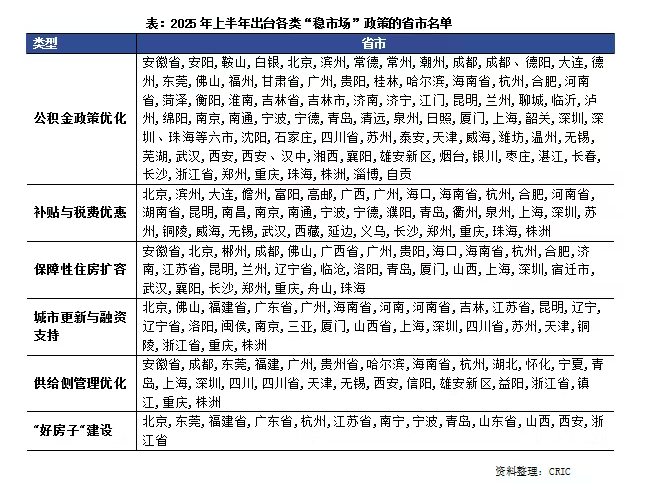 2025年上半年,中央和相關(guān)部門持續(xù)發(fā)聲釋放樓市政策利好,并落地具體舉措,涵蓋去庫存、擴需求、新模式、化風(fēng)險等方面,例如專項債收購存量閑置土地、收購存量商品房,加力實施城中村改造和降低5年期以上LPR,推進“好房子”建設(shè)等。