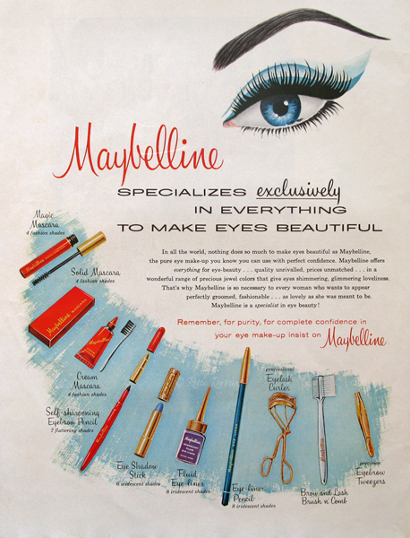 1913年的時(shí)候(不要懷疑時(shí)間,就是那么早),有個(gè)叫做瑪貝爾(Mabel)的姑娘單戀上一個(gè)帥小伙兒,為了讓睫毛好看好看一點(diǎn)兒,這姑娘就用凡士林加上煤灰來(lái)為自己的睫毛上了點(diǎn)兒妝。而這個(gè)土方子,還是她從某時(shí)尚雜志上看來(lái)的。