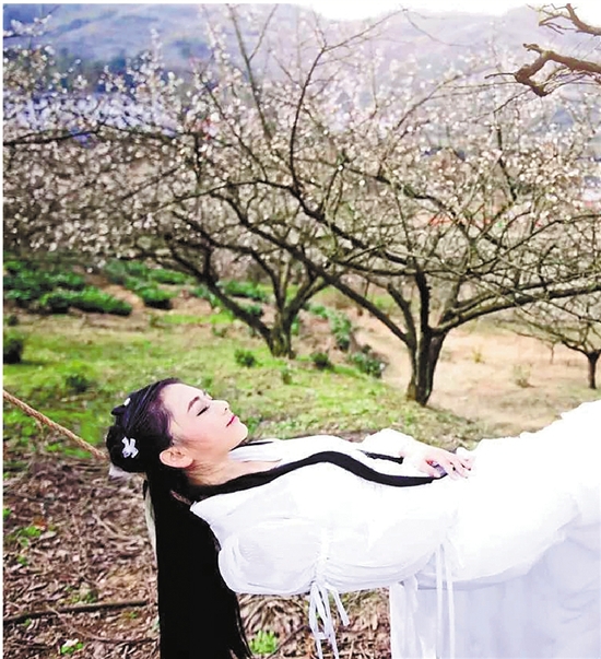 浙江在線03月22日訊(錢(qián)江晚報(bào)通訊員陳玉婷 記者苗麗娜)盛開(kāi)的香雪梅海間,一個(gè)女孩白衣勝雪?;蛭鑴t灑不拘,行云流水;或輕曳秋千,靈動(dòng)輕盈;或側(cè)顏微笑,嬌美動(dòng)人。