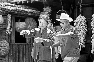 圖為吳天明(右)生前指導(dǎo)演員拍戲。有人認(rèn)為吳天明性情剛烈,不會(huì)贊同別人替自己跪求排片。