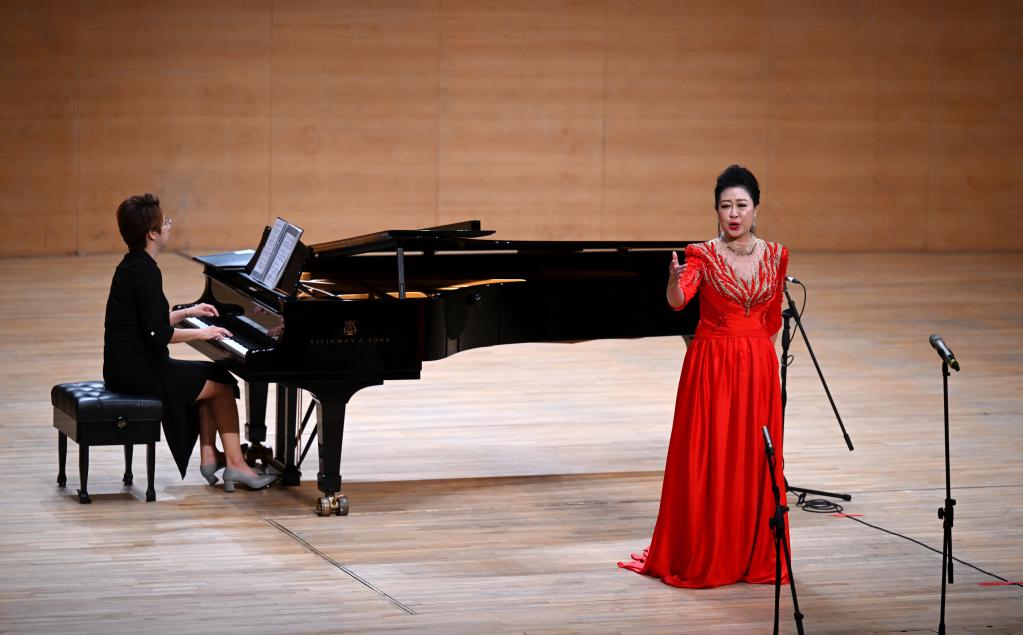 7月1日,天津歌舞劇院演員陳姝在演唱選自歌劇《玉鳥兵站》的曲目《我心永愛》。新華社記者 趙子碩 攝