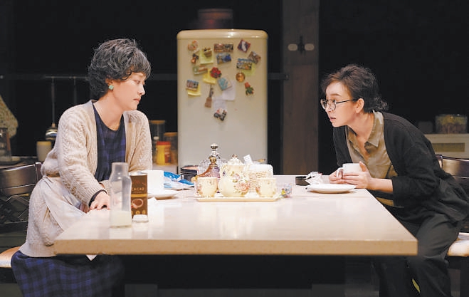 “《晚安,媽媽》沒(méi)有大的戲劇沖突,所有的矛盾都來(lái)自真實(shí)的生活,通過(guò)合情合理的人物關(guān)系和環(huán)環(huán)相扣的對(duì)話,去撥開(kāi)日常生活之下翻滾的心?!碧茻钚稳?,這是一部沒(méi)有借助所謂的“手段”的作品,100分鐘的演出真誠(chéng)動(dòng)人,靠的是扎實(shí)的舞臺(tái)實(shí)景和兩位演員牽動(dòng)肺腑的表演——冰箱里塞滿食物,杯子盛著冒白氣的熱巧克力,水龍頭能擰出自來(lái)水,沒(méi)有刻意的音樂(lè)和效果,整座舞臺(tái)如同真實(shí)生活的切面。演員需要在“做家務(wù)”的同時(shí)進(jìn)行快節(jié)奏、高密度的對(duì)話,“手上不能停,但也不能攪戲,比如母女倆換沙發(fā)套的那一段,我們就練了很久很久?!碧茻钫f(shuō)。
